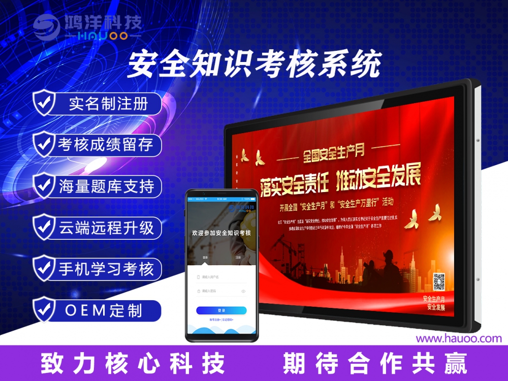 配合本公司的實名制安全培訓管理系統(tǒng),還可以實現(xiàn)受訓人員的實名制考核、安全教育活動的全過程實名制流程管理,以及考核活動的檔案化管理等功能。