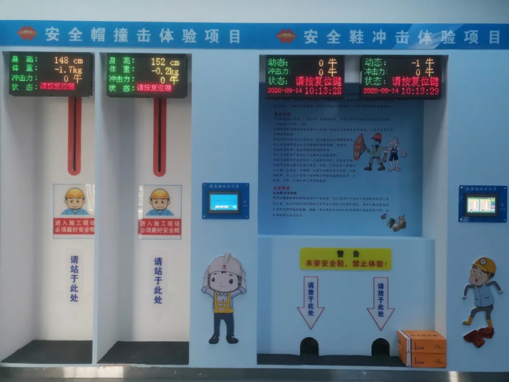 全鞋防砸體驗(yàn)系統(tǒng)可根據(jù)需要設(shè)置重錘的沖擊力;定制化的產(chǎn)品還可以實(shí)時(shí)測量體驗(yàn)人員的體重,并測量本次體驗(yàn)中體驗(yàn)人員所承受的沖擊力。